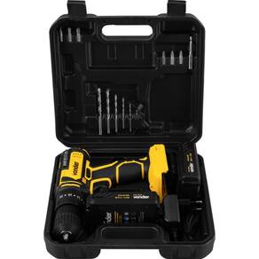 Conteúdo: 1 Parafusadeira/furadeira,1 maleta, 2 baterias de 20 V, 1 carregador bivolt automático, 6 brocas para madeira (1,5mm, 2,5mm, 3,0mm, 4,0mm, 5,0mm e 6,0mm), 6 bits (2 fendas (5mm e 6mm), 2 phillips (PH1 e PH2) e 2 pozidrive (PZ1 e PZ2)) e 1 soquete magnético encaixe de 1/4" + 1 bits de ponta dupla (ponta PH2 e ponta fenda 5,5mm);