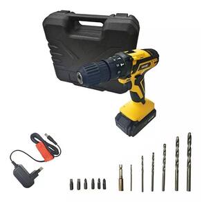 1 parafusadeira/furadeira, acompanha: 1 maleta, 1 bateria de 12 v, 1 carregador bivolt automático, 6 brocas de aço rápido 1,5 mm, 2,5 mm, 3,0 mm, 4,0 mm, 5,0 mm e 6,0 mm , 6 bits 2 fendas 5 mm e 6 mm , 2 phillips ph1 e ph2 e 2 pozidrive pz1 e pz2 e 1 soquete magnético encaixe de 1/4