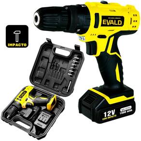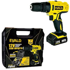Parafusadeira Furadeira Bateria 12V com Impacto Bivolt PFE-012EVI Maleta e Kit EVALD