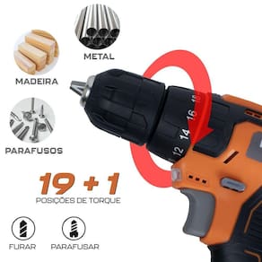 Especificações - marca: rayco - modelo: r22245 - bateria íons de lítio 12v 1.500ah - carregador bivolt - posições de torque: 19 + 1 - capacidade do mandril: 0,8 a 10mm - velocidade: 0 a 700rpm - velocidade controlada no gatilho - bateria de longa duração - luz de led integrada - ação reversível - empunhadura antideslizante - bateria sem efeito memória com indicador de bateria máxima - dimensões da maleta: 27 x 23 x 9 cm - peso bruto: 1,6kg - garantia: 1 ano