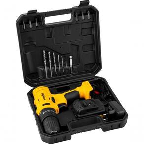 Acompanha acessórios encaixados perfeitamente na maleta, conferindo organização, praticidade e maior vida útil. Possui regulagem para 18 posições de torque e velocidade variável (2 velocidades). Contém 3 funções de operação: parafusadeira, furadeira sem impacto e furadeira com impacto. Conta ainda com LED para melhor visibilidade do local de trabalho, indicador de carga da bateria, cabo com revestimento emborrachado proporcionando maior conforto ao operador, bateria de íons de lítio que confere alta eficiência de operação, além de fonte de alimentação bivolt automático com tensão de entrada de 100 V~ - 240 V~.
