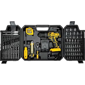 Batidas por minuto: 21000 | Capacidade máxima de perfuração em madeira: 20mm | Com função parafusadeira: Sim | Com sistema antivibração: Não | Quantidade de baterias: 1 | Tamanho do mandril: 10 | Tipo de bateria: Íons de lítio | Torque máximo: NA | Com botão de bloqueio: Sim | Com controle de torque: Sim | Inclui carregador: Sim | Tempo de carga da bateria: 3 a 5 horas | É sem fio: Sim | Amperagem da bateria: 2 | Com função percutor: Sim | Com velocidade variável: Sim | Modelo detalhado: PFV 078 | Tipos de alimentação: Bateria | Capacidade máxima de perfuração em metal: 10mm | Com função reversa: Sim | Com luz LED: Sim | Tipo de tecnologia do motor: Com Escovas | Frequência: 50/60 Hz | Capacidade máxima de perfuração em betão: 10mm | Inclui bateria: Sim | É kit: Sim | Apresentação: Maleta | Velocidade mínima de rotação: 400 | Cor: Preto e Amarelo | Voltagem: Bivolt | Voltagem da bateria: 20V | Velocidade máxima de rotação: 1400
