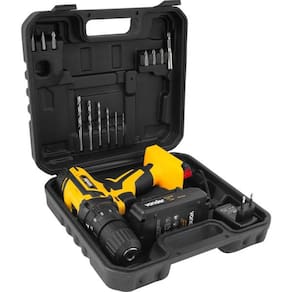Acompanha 16 acessórios encaixados perfeitamente na maleta, conferindo organização, praticidade e maior vida útil dos acessórios. Possui regulagem para 18 posições de torque e velocidade variável (2 velocidades). Contém 3 funções de operação: parafusadeira, furadeira sem impacto e furadeira com impacto. Possui LED para melhor visibilidade do local de trabalho, indicador de carga da bateria, cabo com revestimento emborrachado proporcionando maior conforto ao operador, bateria de íons de lítio que confere alta eficiência de operação, além de carregador bivolt automático com tensão de entrada de 100 V~ - 240 V~