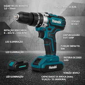 A Parafusadeira e Furadeira 21V combina potência, conforto e versatilidade para diferentes tipos de trabalho. Ideal tanto para uso doméstico quanto profissional, este equipamento oferece torque elevado, controle preciso de velocidade e empunhadura ergonômica para garantir eficiência e segurança em cada aplicação.Características Técnicas:Tensão: 21V (Bivolt)Bateria: Íons de Lítio 2000mAhTorque máximo: 35 N·mAjustes de torque: 18 + 3 posiçõesRotação sem carga: 0–450 / 0–1700 RPMFunção impacto: SimDiâmetro do mandril: 1,0 – 10 mmCapacidade da broca: 10 mm (aço) / 25 mm (madeira)Empunhadura: Soft Grip antiderrapanteIluminação: LED embutido para trabalhos em locais com pouca luzModelo: LWJ-272Benefícios:Alta potência e desempenho constanteDuas velocidades ajustáveis para diferentes aplicaçõesControle de torque preciso para evitar danos ao materialLeve, ergonômica e de fácil manuseioMandril sem chave para troca rápida de brocasDesign moderno e resistenteConteúdo da Caixa:1 Parafusadeira/Furadeira 2 Baterias de íons de lítio 2000mAh1 Carregador Bivolt automático1 Conjunto de brocas e bits (varia conforme o kit)1 Extensor flexível para bits1 Manual de instruções1 Maleta plástica para transporte e armazenamentoCaracterísticas técnicasMaterial: NylonCapacidade de perfuração:Aço: 10 mmMadeira: 21 mmParede de tijolo: 8 mmCapacidade do mandril: 0,8–10 mm (1/32–3/8)Velocidade:Alta: 0–1700 RPMBaixa: 0–450 RPMNúmero de impactos:Alta velocidade: 0–25500Baixa velocidade: 0–6750Torque máximo de aperto:Conexão rígida: 30 N·mConexão leve: 14 N·mTorque máximo de travamento: 28 N·mVoltagem da bateria: 21VDica de Uso:Antes do primeiro uso, carregue completamente as baterias para garantir melhor autonomia e desempenho. Utilize sempre acessórios compatíveis e mantenha o equipamento limpo e armazenado em local seco. Marca: Não Informado
