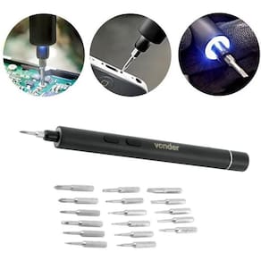 Parafusadeira de precisão a bateria 3,7v tipo caneta vonder - 60.01.003.700 Indicada para fixar e soltar parafusos. Ideal para trabalhos que necessitam de qualidade e precisão, como para uso em placas eletrônicas, computadores, monitores, smartphones, câmeras fotográficas, pequenos objetos, entre outros. - caracteristicas: - possui 3 leds auxiliares, para melhor iluminação na área de trabalho, e bateria de lítio recarregável com indicador de carregamento. Conta com bits em material, proporcionando maior durabilidade e resistência. E ainda, possui proteção contra sobrecarga. - especificações técnicas: - tipo do encaixe da parafusadeira: sextavado - 5/32 - 3,97mm - rotação da parafusadeira: 200/min - frequência: 50hz/60hz - tensão do carregador de bateria: carregamento via cabo usb - massa aproximada: 40g - bateria: 36v - conteúdo da embalagem: - 1 parafusadeira de precisão a bateria - 1 cabo para carregamento usb - 1 magnetizador/desmagnetizador - 2 bits estrela p, 2 p5 - 1 bits triângulo 3.0 - 2 bits allen 1,5mm, 2mm - 4 bits phillips ph000, ph00, ph0 e ph1 - 3 bits fenda 1,5mm, 2mm e 2,5mm - 3 bits hexalobular t2, t3 e t4 - 3 bits hexalobular com furo t5, t6 e t8 - : 1 ano Ref.: vonder-6001003700 Todas as informações divulgadas são de responsabilidade do fabricante/fornecedor