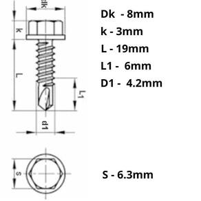 A Bitola deste parafuso é de 4.2mm, o Comprimento é de 19mm e a Cabeça é Sextavada de 6,3mm, possibilitando o uso de chave de boca comum ou de soquetes magnéticos adaptados a parafusadeiras. Isso proporciona agilidade e rapidez na conclusão dos serviços, além de garantir um excelente acabamento e um trabalho eficiente e profissional.