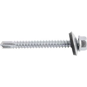 Possui acabamento zincado, proporcionando maior resistência contra oxidação/corrosão. Conta com arruela de aço incorporada, além da arruela de neoprene.
