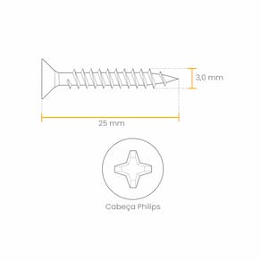 Marca: MK Tipo de cabeça: Chata Material: Aço Cor: Preto Comprimento: 25 mm Diâmetro: Ø 3,0 mm