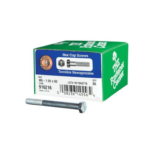 Hillman M6-1,00 mm Diâmetro x 60 mm L Parafuso de cabeça sextavada de aço tratado termicamente, pacote com 50