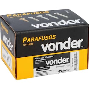 Parafuso Madeira 4,0 x 16 mm Chipboard Cabeça Flangeada Phillips 500 Peças Vonder