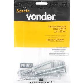 1 Cartela com 4 parafusos sextavados rosca soberba