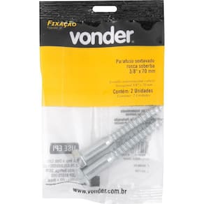 Marca: VonderConteúdo da Embalagem:1 Cartela com 2 parafusos sextavados rosca soberbaDestaques e diferenciais:Possui acabamento zincado, proporcionando maior resistência contra oxidação/corrosãoAplicações e dicas de uso:Indicado para fixações entre duas ou mais partes, como aplicação em madeira, alvenaria e concreto para concreto, necessita utilização de bucha de fixação Características Técnicas:Diâmetro do parafuso sextavado pol : 0.3/8 Comprimento do parafuso sextavado mm : 70,0 mm Marca: Não Informado
