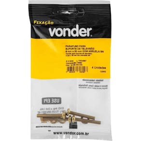 Parafuso para Suporte Vonder de TV 4 x 30 mm com Arruela M4 com 4 Peças - Vonder OficialSe você busca praticidade, segurança e durabilidade na instalação do seu televisor, o Parafuso Vonder para Suporte de TV é a escolha certa. Desenvolvido com foco na resistência e no desempenho, este conjunto é ideal para quem deseja fixar aparelhos de TV em painéis de maneira firme, estável e com acabamento de qualidade.Fabricado em aço carbono, um material amplamente reconhecido pela sua resistência mecânica, este parafuso garante ancoragem sólida mesmo em longos períodos de uso. Além disso, seu acabamento zincado atua como uma proteção eficaz contra oxidação e corrosão, o que o torna perfeito tanto para ambientes internos quanto para áreas mais suscetíveis à umidade, como salas com ar-condicionado ou varandas cobertas.Com 4 mm de diâmetro e 30 mm de comprimento, esse parafuso foi pensado para garantir compatibilidade com a maioria dos suportes e painéis utilizados em instalações de televisores. Acompanha ainda arruelas M4, que proporcionam melhor distribuição da força aplicada, evitando danos ao material do painel e ampliando a área de contato da fixação - um diferencial importante para manter a integridade do móvel ou da parede ao longo do tempo.Especificações- Material tipo/composição : Aço carbono- Acabamento: Zincado- Diâmetro: 4 mm- Comprimento do parafuso: 30 mm- Massa aproximada peso kg : 0,017 kgItens inclusos- 4 parafusos e 4 arruelasGarantia- 03 meses com o fabricante Marca: Não Informado Ean: 7893946808297
