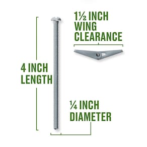Parafuso Toggle Bolt Hillman 1/4x10 cm, pacote com 50 Spring Wings