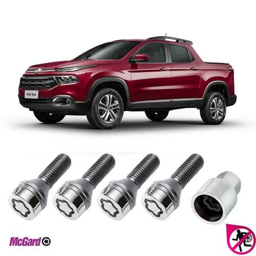 Parafuso trava antifurto roda fiat toro 2017 a 2023 produto mcgard, homologado pela montadora. Especificação técnica: desenvolvido com as especificações técnicas das montadoras, a trava antifurto mcgard foi testada e homologada através dos mais rigorosos testes contra furto, de resistência e montabilidade. A geometria do segredo dos parafusos antifurto permite gerar número infinito de combinações, o que torna o sistema de fixação ainda mais seguro. Os parafusos antifurto mcgard são fabricados em aço temperado com tratamento em cromo nickel, que impede o uso de ferramentas convencionais na sua remoção. O anel oring utilizado nos parafusos antifurto mcgard para estepe permite pré-torque manual e elimina ruído causado por vibração. Produto mcgard, homologado pela montadora. Instalação: basta remover um parafuso ou porca de cada roda do veículo, substituindo pelo novo, utilizando a chave com segredo junto com chave de rodas do carro