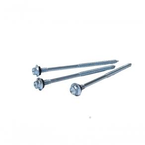 Parafuso Zincado para Fixação em Terça de Madeira - 12X4 (5.5X100MM), Ponta Ogivada - Ideal para telha termoacustica e fixação em viga madeira. Com arruela de vedação fixa.