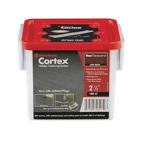 O FastenMaster Collated Cortex para decks Trex - 100 pés lineares é uma maneira rápida e fácil de ocultar fixadores e cabeças de parafusos ao instalar placas de convés Trex e agora é 50% mais rápido. Os plugues FastenMaster Cortex agora estão disponíveis em uma faixa agrupada. Isso minimiza o manuseio e economiza um tempo valioso no local de trabalho. O fixador não apenas fornece altos níveis de força de retenção, mas oculta os fixadores de todo o deck, incluindo a primeira e a última tábuas, placas de disjuntor, perímetro e escadas. Com o sistema de acionamento TORX ttap, é quase impossível removê-lo e os fixadores são facilmente removidos. O botão de estabilidade mantém o fixador em linha reta durante o processo de instalação. A ferramenta de configuração é de nível industrial e permite que você instale 350 fixadores em uma ferramenta de configuração Cortex. O Cortex é fácil de usar e inclui tudo o que é necessário, incluindo parafusos, plugues e ferramentas de configuração. A FastenMaster recomenda a instalação com uma furadeira sem fio de 18 volts. Os acionadores de impacto não são recomendados em tábuas de convés feitas de material compósito com ou sem cabeçote. Nota: A pré-perfuração não é necessária durante a maior parte do projeto. A pré-perfuração é necessária ao fixar a menos de 1/2" da extremidade de uma placa e nas juntas esquadradas. Use uma broca de 3/16" para furos piloto pré-perfurados.