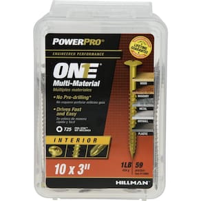 Parafusos de cabeça de pastilha multimaterial Power Pro Premium One, aço zincado amarelo, fixados em madeira, metal, concreto, drywall e plástico, amarelos, #10 x 3 polegadas, caixa com 59 parafusos
