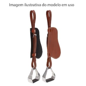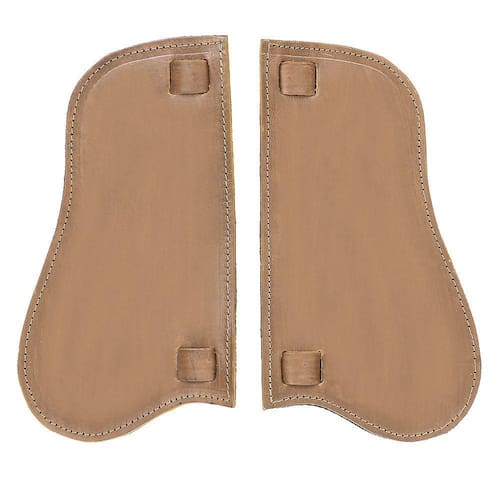 Par de paralamas Bronc-Steel fabricados em couro na cor Natural com parte interna em feltro, com costuras reforçadas e passadores em couro para os loros. Utilizado em selas e arreios com loros de até 3,5cm de largura.