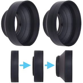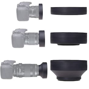 O parassol de borracha para lentes de câmeras são compatíveis com todas as lentes de 55mm com rosca universal. Previne o reflexo da lente causado por luz externa e protege contra impactos ou choques inesperados. Eles reduzirão o brilho e o reflexo da lente e aumentarão o preto em suas fotos. Facilmente dobrável em 3 etapas para oferecer diferentes níveis de proteção solar e super fácil de usar.