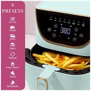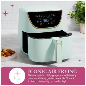 Descubra a elegante Air Fryer Paris Hilton, a alternativa moderna para quem não quer esperar o forno pré-aquecer. Este eletrodoméstico sofisticado oferece cozimento rápido e uniforme, com circulação de ar quente que garante alimentos crocantes e dourados em poucos minutos. Com uma ampla faixa de temperatura e um ventilador que ajusta sua velocidade conforme a função escolhida, você pode preparar suas receitas favoritas, como batatas fritas, utilizando pouco ou nenhum óleo. O display touchscreen digital permite escolher entre 8 funções pré-programadas: Air Fry (fritar com ar), Assar, Grelhar, Cozinhar no forno, Reaquecer, Manter aquecido, Pizza e Desidratar. Além disso, conta com controle ajustável de tempo e temperatura que varia de 32°C a 204°C, possibilitando a personalização perfeita para qualquer prato. Com capacidade espaçosa de 5,7 litros, é ideal para famílias ou para quem gosta de preparar refeições com antecedência. Sua cesta e placa crocante possuem revestimento antiaderente livre de PFAS, PFOA, PFOS e PTFE, oferecendo maior segurança e facilidade na limpeza. A limpeza é ainda mais prática: a cesta e a bandeja crocante são próprias para lava-louças, e o exterior do aparelho pode ser facilmente limpo com um pano úmido. Potente com 1700W, a Air Fryer Paris Hilton adiciona um toque de sofisticação à sua cozinha, combinando eficiência e design com cores modernas e detalhes em dourado, tornando-a um item que você vai querer manter sempre à vista.