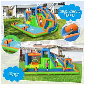 O combo de casa inflável com toboágua infantil BOUNTECH é o presente perfeito para estimular o potencial das crianças e proporcionar uma infância feliz. Com diferentes comprimentos e inclinações nos slides, as crianças podem dominar seu próprio equilíbrio e velocidade e exercitar sua capacidade de coordenação física. Além disso, a casa inflável de salto de água combina uma variedade de funções e entretenimento em um, incluindo um longo escorregador, parede dupla de escalada, piscina infantil e área de salto. Feito de material durável à prova d água, resistente a rasgos e com costura de reforço duplo, o castelo saltitante pode acomodar várias crianças para brincarem juntas com segurança. A área de salto é cercada por uma parede de malha respirável de 4 lados e as grades de proteção elevadas dos escorregadores aumentam ainda mais a segurança. O parque aquático do quintal foi projetado com canhões de água e um aspersor superior, que fornecem spray de água fria constantemente para deixar as crianças imersas em brincadeiras ao ar livre. O pacote com tudo incluído vem com uma bolsa de transporte conveniente, estacas de segurança, remendos de reparo, kit de montagem de mangueira de água, bola de basquete inflável e bomba manual para a bola. Recomendado para uso com soprador 735W750W não incluído .