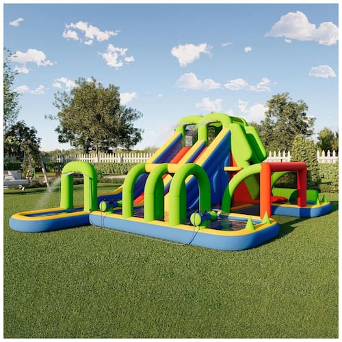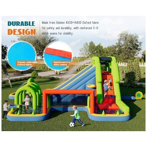 O Pula Pula Inflável Albott é o sonho de toda criança! Com cercas de segurança, paredes reforçadas, tecido Oxford de alta qualidade e costuras resistentes, oferece máxima segurança e durabilidade. Seu design de fluxo de ar contínuo evita superinflação, garantindo diversão sem preocupações. Com área de brincadeira multifuncional, incluindo escorregadores, cesta de basquete, parede de escalada, piscina, pistolas d'água e gol de futebol, proporciona entretenimento interminável. Fácil de montar e guardar, é perfeito para festas, eventos e diversão em família.