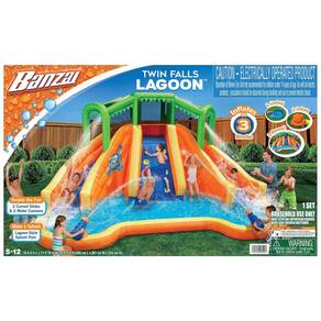 Aproveite a diversão com nossos escorregas duplos e 2 canhões de água Este produto permite que você deslize e mergulhe na piscina da lagoa, proporcionando horas de entretenimento para toda a família. Com inflação rápida em menos de 3 minutos, É perfeito para acomodar várias pessoas. Além disso, o conjunto de mangueira de pulverização de água removível permite que você ajuste a intensidade da água para uma experiência personalizada. A associação inflável do respingo de 74L X de 56W X de 35H é ideal para os mais pequenos se divertirem na água. E para sua conveniência, incluímos um patch de reparo e etiqueta de observação de água. Aproveite o verão com este incrível produto