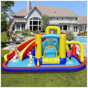 As apostas incluídas adicionam mais estabilidade ao castelo. O corrimão elevado e estendido dos escorregadores aumenta ainda mais a segurança, assim como a parede de malha visual respirável colocada na parte superior da parede de escalada. Leve o para qualquer lugar para brincar, pois o toboágua inflável vem com uma bolsa de transporte conveniente que permite levá lo para qualquer lugar para se divertir.