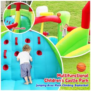 Projetado para Segurança, Construído para Durar. O parque de castelo inflável é feito de materiais atóxicos e inodoros, com fibras de poliéster pesado durável, costuras duplas e revestimento de dupla camada para garantir estabilidade e durabilidade. Cuidadosamente criado para a segurança dos pequenos aventureiros, este brinquedo inflável é projetado para resistir a temporadas de brincadeiras animadas. Confie em sua durabilidade para proporcionar verões infinitos de diversão. Uma Aventura Aquática Espera por Você. Embarque em uma aventura aquática inesquecível com nosso Castelo Inflável. Este playground extraordinário apresenta duplos escorregadores, uma parede de escalada em rocha, um trampolim pula-pula, uma cesta de basquete para enterradas e um oásis aquático para diversão sem fim sob o sol. As cores do castelo colorido fazem com que as crianças sejam envolvidas por um mundo de conto de fadas maravilhoso. Um Sonho de Verão para as Crianças. Aqui é onde os sonhos de verão da infância se tornam realidade! Mergulhe na ampla piscina profunda, participe de épicas batalhas de pistolas de água e desfrute das nossas refrescantes fontes. Seja pulando no trampolim, conquistando a parede de escalada ou descendo pelos escorregadores duplos, é um mundo de diversão para idades de 3 a 10 anos. Diversão Rápida no Quintal. Conecte facilmente com qualquer mangueira de jardim. Você pode inflar e desinflar rapidamente em menos de dois minutos, e pode ser facilmente dobrado para transporte e armazenamento. O inflador de 110-120 V proporciona fluxo de ar contínuo para máxima segurança e conveniência. Equipado com estacas para manter o parque em um estado seguro. Perfeito para Festas e Encontros de Crianças. Organizando um aniversário ou encontro de crianças? Este castelo inflável é um espetáculo que tornará suas reuniões inesquecíveis. Deixe seus filhos e seus amigos explorarem um mundo de imaginação e risos, criando memórias preciosas juntos. Este é como um mundo de conto de fadas dos sonhos, e talvez haja uma experiência de Alice no País das Maravilhas.