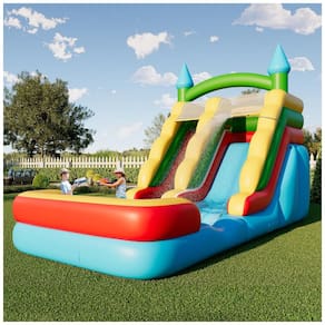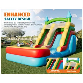 Transforme qualquer dia em um festival de diversão! Este castelo inflável da Albott traz risadas, escorregões e respingos para a vida de festas de aniversário a encontros de fim de semana. Projetado para até 6-8 crianças brincarem juntas, ou para os pais se juntarem para momentos familiares preciosos. Aventura de castelo feita para brincadeiras reais, com escalar, escorregar, pular e dar um mergulho em uma piscina pronta para água. Ideal para diversão em família ou profissional, garantindo durabilidade com PVC resistente, suportando até 900 libras. Possui paredes altas, trilhos seguros e uma ampla entrada para garantir saltos seguros. Certificado pela SGS com material 100% PVC. Montagem em minutos com o inflador de 2HP incluso. Fácil de guardar e transportar, perfeito para festas, eventos escolares e acampamentos de verão.