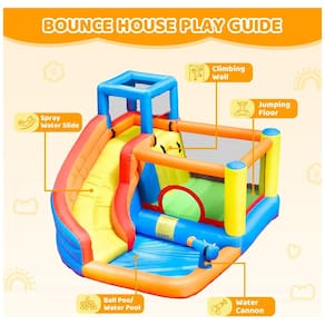 O Doctor Dolphin Inflatable Water Slide Bounce House é feito de tecido Oxford durável e resistente, combinado com nylon 420D e lona (tarpaulin) de PVC, materiais que são à prova de furos e testados em laboratório para garantir segurança e durabilidade. Essas características tornam o brinquedo adequado para uso intenso, com costuras reforçadas para maior resistência e segurança durante as brincadeiras aquáticas e secas.