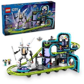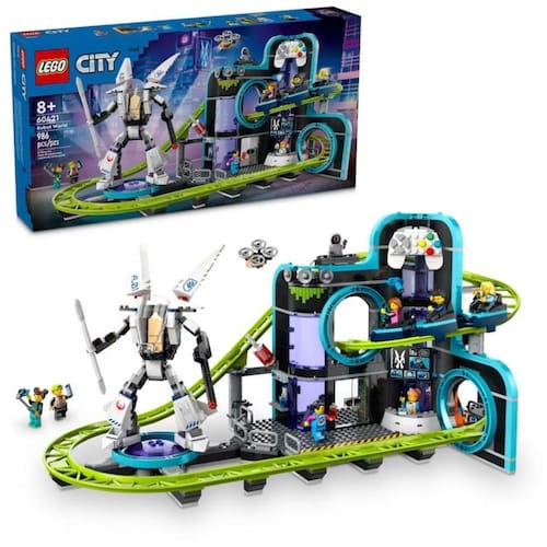 Parque de Montanha-Russa Mundo dos Robôs - Lego 60421 conjunto de montanha-russa de brinquedo - Faça as crianças voarem com este brinquedo de aventura LEGO City Robot World Roller-Coaster Park totalmente funcional para entusiastas de parques de diversão e fliperamas com 8 anos ou mais. O que há na caixa - Este conjunto de construção criativo inclui tudo o que as crianças precisam para construir uma montanha-russa temática de robô com muitos recursos, incluindo uma figura de ação de robô LEGO destacável e 8 minifiguras Um brinquedo de construção repleto de detalhes para brincadeiras imaginativas - Os recursos incluem um trem de montanha-russa de 3 carros funcional, um robô articulado com assento de minifigura e consoles de videogame de fliperama de brinquedo Acessórios de minifigura LEGO - Este modelo de montanha-russa vem com acessórios divertidos para brincadeiras de faz de conta, incluindo 3 celulares de brinquedo, um bastão de selfie, 2 copos de raspadinha, 2 controles de videogame e um troféu Presentes criativos para crianças - Dê este conjunto de brinquedo de parque de diversões LEGO como um presente de Natal ou aniversário para meninos e meninas de 8 anos ou mais Uma cidade sem limites - LEGO City é um lugar onde as crianças podem liberar sua imaginação sem limites, com estruturas, veículos e cidadãos que as motivam a construir, criar, explorar e brincar Dimensões - A montanha-russa neste conjunto de construção de 986 peças mede mais de 25 cm de altura, 21 pol. 54 cm de largura e 10,5 pol. 27 cm de profundidade Dimensões de envio : 3,58 A x 11,1 L x 21,26 C Dimensões do produto : 3,58 A x 11,1 L x 21,26 C Código UPC : 673419390095 Homologação Inmetro: IP-BRI-4132/2020-03 Ean: 673419390095
