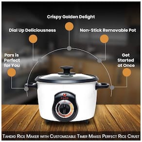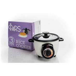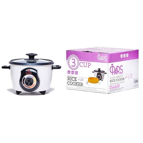 Panela elétrica para arroz Persa, com capacidade de 3 xícaras, timer customizável, função de manter aquecido, panela antiaderente removível e construção durável em aço inoxidável.Lâmpada piloto