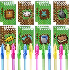 24 peças de lembrancinhas de festa com tema de pixel | 12 canetas de tinta invisível e 12 blocos de notas com tema mini Pixel | Recheios de sacolas de festa com tema de pixel, prêmios de sala de aula, suprimentos de festa