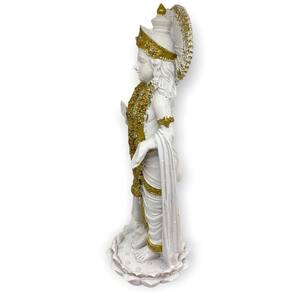 Escultura Parvati na flor de lótus em pé 24 cm branca e dourada em resina - Deusa do Amor Esta escultura em resina trará boas energias e harmonia para sua casa, irá trazer bons fluídos. É ideal para colocar em seu altar ou completar a decoração de seu ambiente. Esculturas são itens especiais e decorativos, é um recurso que dá um toque a mais em qualquer ambiente, tem um valor espiritual e sentimental. Você pode enfeitar com um estilo próprio com muito bom gosto o seu altar ou ambiente. Aplicação: decora sala, estantes, home office, altares, aparadores, mesa de canto ou escritório. É também uma ótima opção para presente, o excelente acabamento da pintura permite mais beleza e estilo para sua casa ou escritório.Especificações Técnicas:Material: Resina
