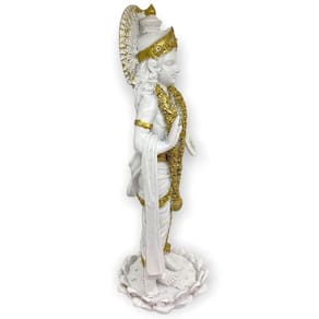 Parvati Na Flor De Lótus Em Pé 24 Cm Branca E Dourada