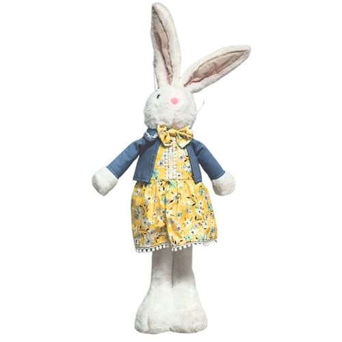 Esta coelha decorativa da Cromus se destaca pela sua paleta de cores: branco (BCO), azul (AZL) e amarelo (AMA). Essa combinação cria um visual alegre e vibrante, perfeito para celebrar a Páscoa.