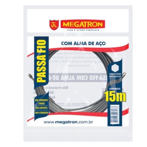 PASSA FIO ALMA DE ACO 15MT CZ MEGATRONO Passa fio Megatron é durável, resistente e flexível, proporcionando facilidade nas instalações elétricas.Modelo: Passa Fio com alma de açoAlma: Cabo de aço latonadoIsolação: Polipropileno*Ideal para: Uso geral**Imagens meramente ilustrativa.*Marca: MegatronCódigo: 79901
