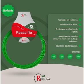 Passa Fio Helicoidal Linha Pesada 30 Metros Passa Fio Helicoidal Linha Pesada 30 Metros - ROHDINA Os passadores de fio são indispensáveis para todo instalador, pois facilitam a passagem dos cabos dentro da tubulação. Por isso, é primordial que seja um produto de qualidade, resistente e que não te deixe na mão! Disponíveis nos comprimentos de 10m, 15m, 20m e 30m, além dos seguintes diferenciais: