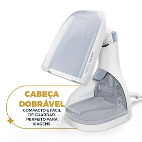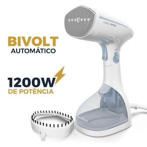 Passadeira a vapor portátil com 1200W de potência, ideal para desamassar tecidos no cabide ou na posição horizontal. Possui cabeça dobrável, reservatório removível de 260mL e acessório escova para remoção de pelos de pets. Bivolt automático.Lâmpada piloto