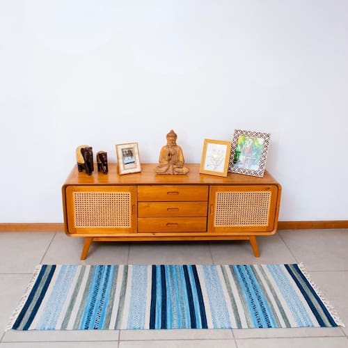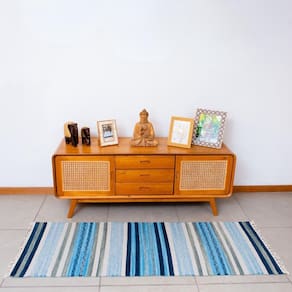 Passadeira chicago 100% algodão 60cmx180cm Cor: azul Passadeira chicago 100% algodão 60cmx180cm A passadeira chicago é perfeita para compor a decoração do ambiente. Você pode usá-la na sala, no hall de entrada ou no quarto deixando o ambiente mais aconchegante e confortável. Escolha a sua favorita. Material: 100% algodão Cores disponíveis: azul & cinza com tons variados de cinza e azul / preto & creme com tons de cinza / bordô & off white com cinza e marinho Peso: aproximadamente 1,4kg Largura: 60cm Altura: 1,80m Origem: índia Este é um produto artesanal e da india. Pode apresentar pequenas variações de cor, tonalidade, brilho, peso e tamanho. Lave a sua passadeira separadamente. Use sabão neutro. Não deixe de molho, nem use alvejante. Não passe com ferro quente sem proteção. Cuide da sua passadeira com carinho. Foto ilustrativa. Produtos adicionais utilizados na composição da foto devem ser comprados separadamente. Marca: Não Informado Ean: 7907954903896