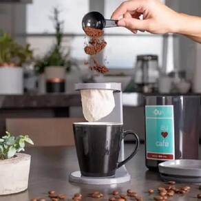 Passador Café Individual Coador My Coffee + Pote Hermetico MAPLE DECOR Detalhes do Produto O Passador De Café My Coffee foi desenvolvido para você apreciar café onde e quando quiser, aliando design e praticidade na hora de tomar o clássico cafezinho passado na hora. O Passador de Café My Coffee é superfácil de usar. Veja no passo a passo abaixo: 1. Monte o Passador de Café My Coffee. Encaixe o coador de pano no suporte e coloque uma xícara embaixo dele. 2. Coloque café no coador. 3. Despeje água quente sobre o café com calma. 4. Pronto Agora é só apreciar um cafezinho quentinho. A linha foi desenvolvida priorizando o cuidado com a sua rotina, por isso, é produzida em plástico atóxico polipropileno , além de possuir filtro reutilizável, podendo ser armazenado dentro do próprio passador. Na cozinha, no escritório Ou durante o home office com o passador My Coffee, é possível apreciar o café na hora que quiser de forma prática e simples, com acabamento que não permite que o café escorra ou fique pingando durante a utilização, sendo seu companheiro perfeito durante o dia a dia. Cuidados Este produto é BPA FREE, vai a lava-louças, sugere-se higienizar com sabão neutro e esponja macia, evitando produtos abrasivos no processo de limpeza. Prático e hermético o pote My Coffeee é indispensável para quem ama e aprecia um bom café.