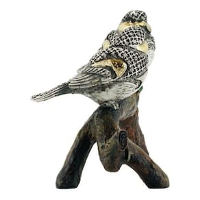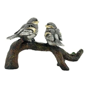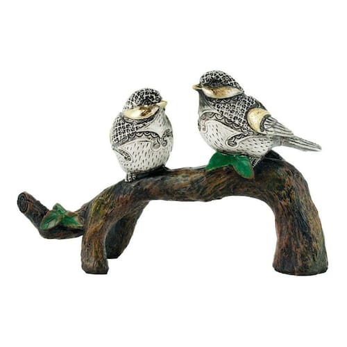 Enfeite decorativo no formato de dois pássaros brancos com detalhes em dourado em cima de um galho. Peça com 13,5 cm de altura e 22,5 cm de largura. Detalhes realistas. Material: resina