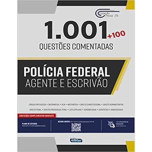 1001 QUESTÕES COMENTADAS – POLICIA FEDERAL: Inovação e comprometimento com o aluno são as principais diretrizes da empresa, e, seguindo essa premissa, a Editora AlfaCon em parceria com os autores, fez uma compilação das questões da obra Passe Já 5.000 carreiras policiais e criou uma edição especial com 1.001 questões voltadas para o concurso da Polícia Federal. Assim você poderá estudar de forma mais direcionada, objetiva e com questões 100% focadas no edital. Esperamos que você aproveite muito este material. Bons estudos!