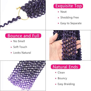 1. Material do cabelo: cabelo sintético de alta qualidade. 2. Comprimento do cabelo: 25,5 cm, 35,5 cm, 45,7 cm, 76,2 cm, cabelo de crochê curto/longo para cabelo trançado de torção de paixão, cabelo de crochê torcido Yanky. 3. Quantidade de cabelo: 5 pacotes/lote, 755 raízes, suficiente para substituição de cabelo de crochê de cabeça inteira. 4. Cor do cabelo: 1B # Feixes de cabelo torcidos de paixão preta 5. O pacote Prime inclui 5 x cabelo encaracolado, 1 x agulha de crochê, 5-10x anéis de cabelo coloridos (aleatório) 6. Característica do cabelo: sem cheiro, fofo e volumoso, super macio e leve, natural e duradouro, tranças fáceis de instalar, segura bem os cachos e não cai, cabelo perfeito para enrolar Para crochê trançado Cabelo humano para mulheres negras, adequado para festas, férias ou uso diário. - ??Material do cabelo: cabelo torcido roxo Ahrencan ombre, feito com cabelo sintético retardante de chamas premium de baixa temperatura, aparência natural e toque suave como cabelo humano, configuração de água quente disponível, adequado para uma variedade de estilos de cabelo de crochê. - ??Fácil de usar: cabelo de crochê ondulado feito à mão, um cabelo clássico perfeito para cabelo humano de mulheres negras, pode ser amplamente utilizado para trançar cabelo de crochê torcido, cabelo cubano, cabelo de crochê torcido de primavera, tranças de caixa jumbo, cabelo de crochê de borboleta envelhecido, cabelo de crochê torcido torcido ou qualquer estilo de cabelo protetor que você adore, fácil de usar e conveniente, economize seu tempo e dinheiro! - ??Vantagem do cabelo:? Aparência natural e elegante, macio e saltitante, sem emaranhado, sem cheiro, sem coceira, duradouro, suave, apertado, muito fácil de torcer e instalar, leve e respirável, amigo da pele, adequado para crianças, conforto de uso prolongado. - ??Especificações da embalagem:? Comprimento: 45,7 cm, pacote: 7 pacotes, 15 fios/pacote, geralmente 6-8 pacotes são suficientes para encher a cabeça. Existem muitas cores e tamanhos para você escolher. Presentes: 5 anéis e 1 agulha de crochê. - ??Qualquer ocasião?Cabelo afro torcido perfeito para diferentes idades e ocasiões, você pode usá-lo para a vida diária, trabalho, escola, encontro, festa, cosplay, casamento, viagens, férias e como presente para ocasiões especiais, uma ótima escolha.