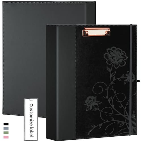 -?Estilo e material premium?O fichário KLLVE é feito de material de imitação de couro, oferecendo um toque macio e durabilidade, com costura à mão que garante um uso duradouro. Design floral requintado em relevo para estilo. Os encadernadores se encaixam em papel tamanho carta e são adequados para os protetores de papel mais comuns. Tamanho desdobrado: 22,5 x 12,4 polegadas, tamanho dobrado: 12,4* 10,4* 1,6 polegadas.