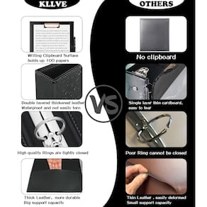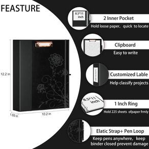-?Organizador de pastas versátil?O fichário com prancheta na frente pode ser uma superfície de escrita. O interior possui dois bolsos para guardar documentos em tamanho carta e papéis soltos importantes. Também vem uma etiqueta na coluna vertebral para ajudá-lo a classificar o fichário. O laço elástico para caneta mantém suas canetas de tinta seguras. As tiras elásticas fecham com segurança para evitar que o conteúdo seja danificado ou perdido durante a viagem.