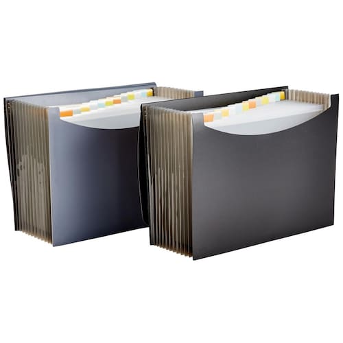 Pasta de arquivos Amazon Basics Expanding Organizer, tamanho carta — preta e cinza, pacote com 2