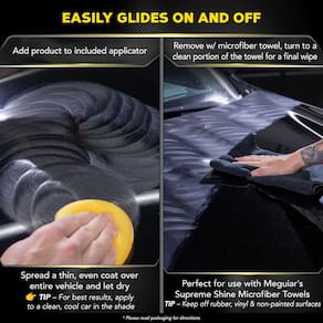 - PRONTO PARA USAR: A cera em pasta premium Gold Class Carnauba Plus da Meguiar vem completa com um aplicador de espuma macia de alta qualidade. Basta adicionar uma pequena quantidade de cera ao aplicador de espuma e aplicar de forma fina e uniforme na tinta.
